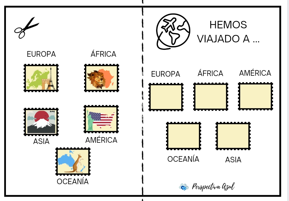 Se trata de este pasaporte educativo, en el vais a poder ir localizando los diferentes continentes que vamos a visitar y de esta manera poder seguir nuestra ruta de viaje.